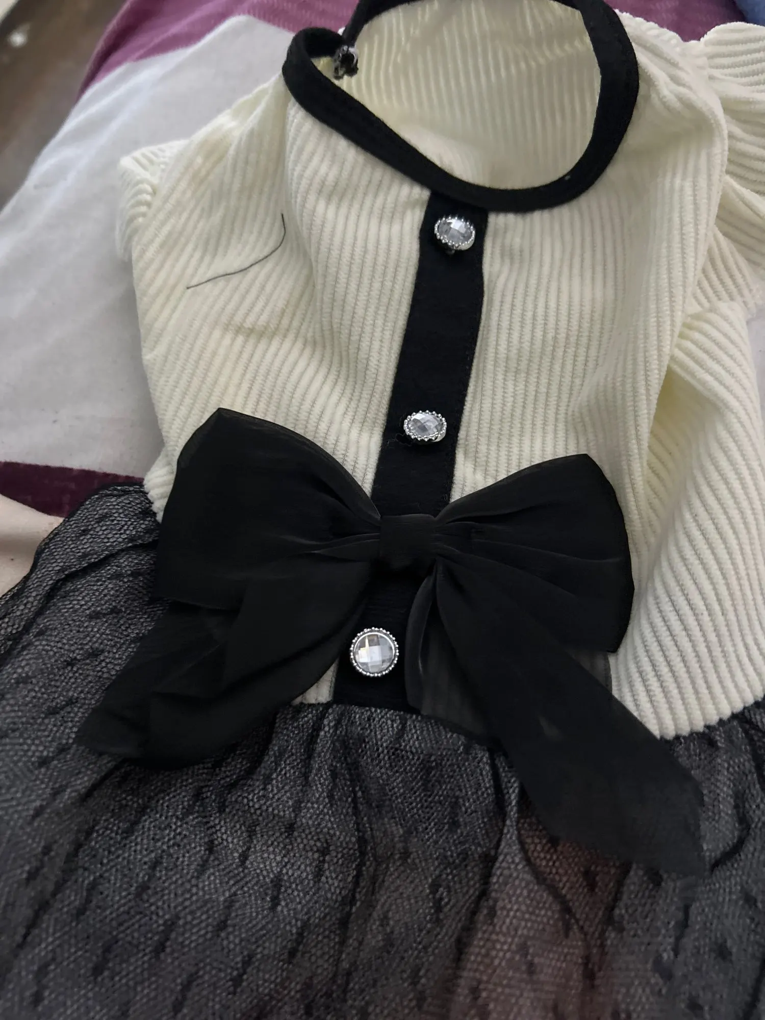 Elegant Summer Dog Dress with Bow – Black & White Lace Skirt for Pomeranians and Small Dogs